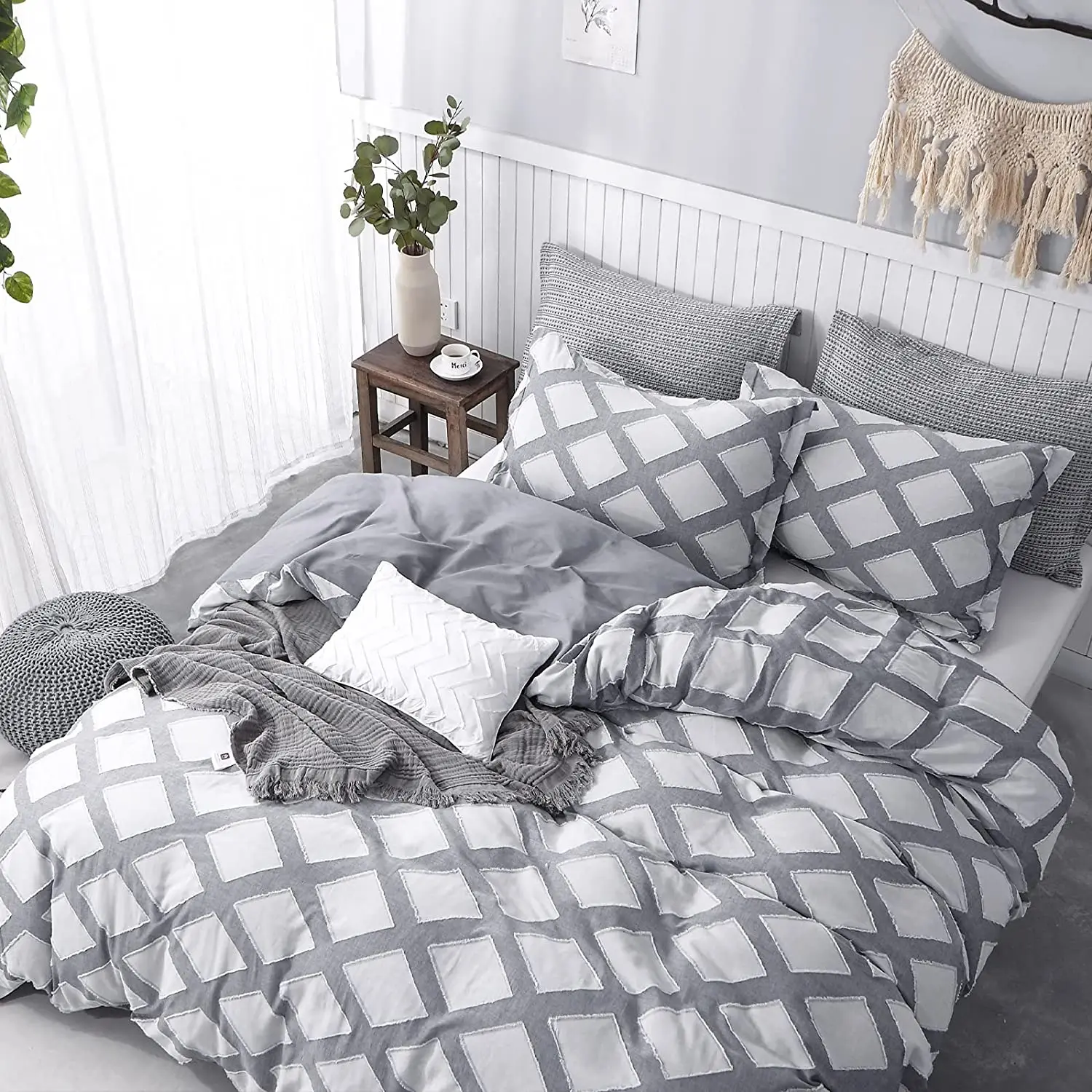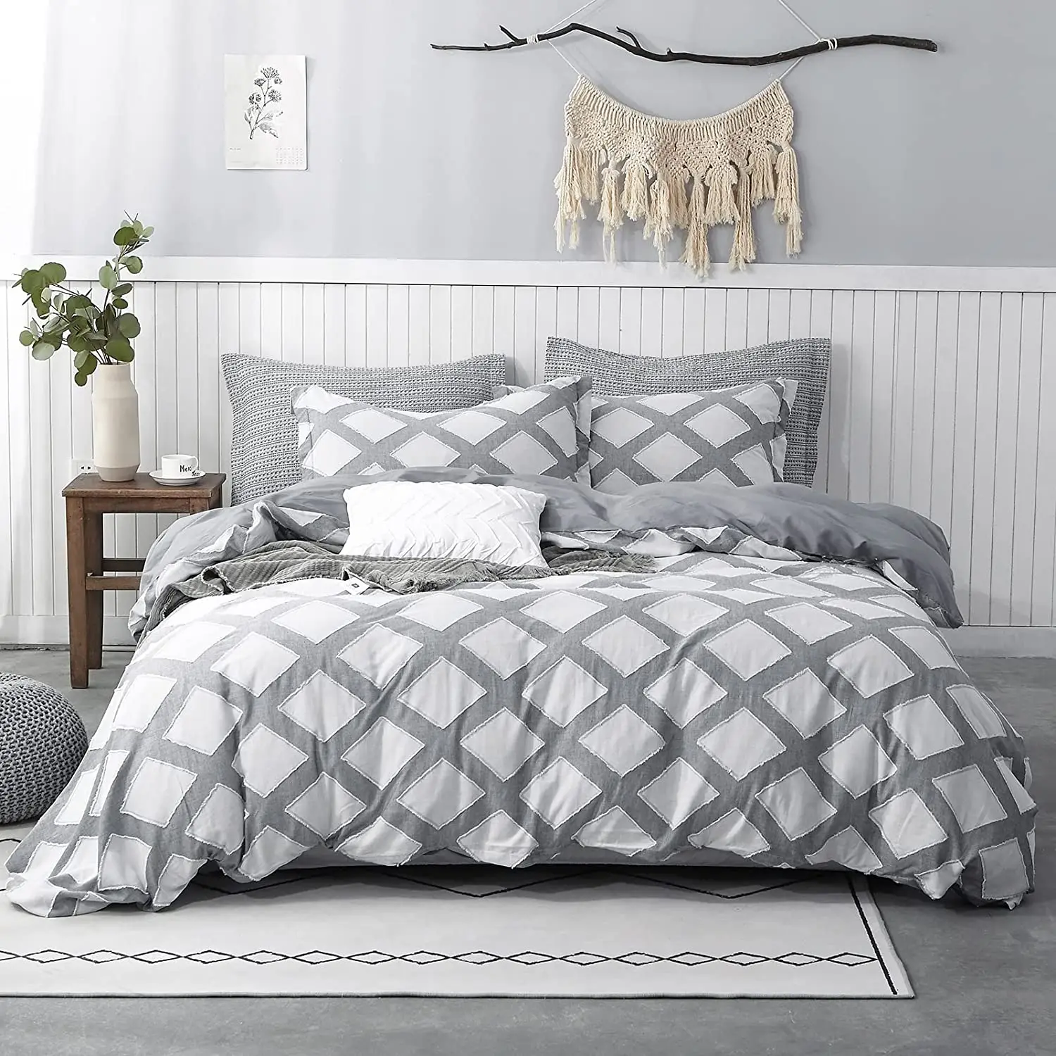 Fashion Tufted Duvet Cover Set 3 Pieces Embroidery Shabby Chic Home Bedding Duvet Covers